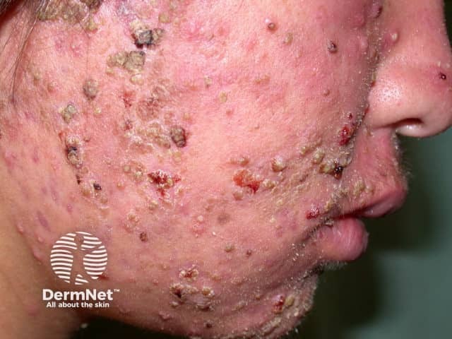 Acne fulminans is a rare and very severe form of acne conglobata associated with systemic symptoms. It nearly always affects adolescent males.