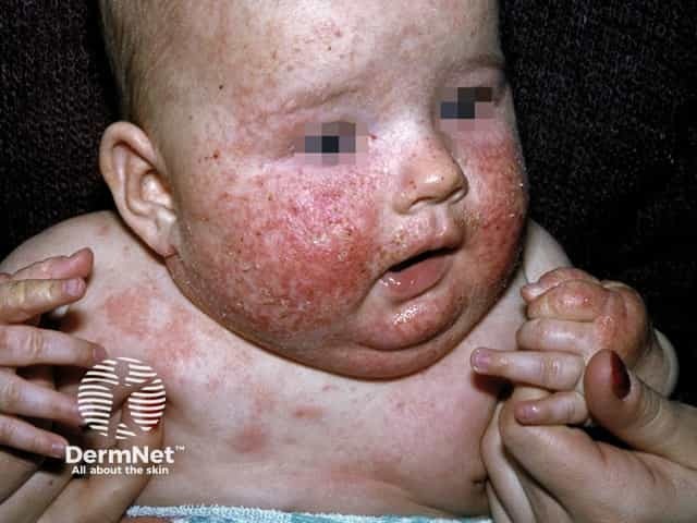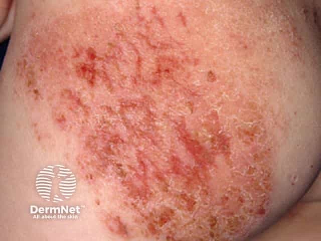 Lichenified and scaly cheek atopic eczema in an African toddler