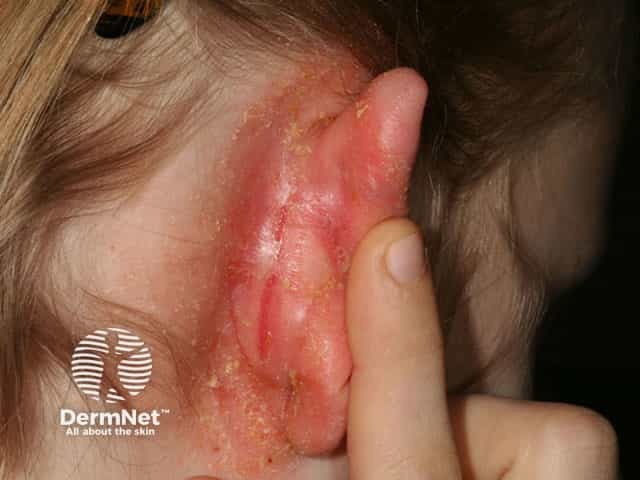 Crusted exudative atopic eczema in an adult (AD-patient6)