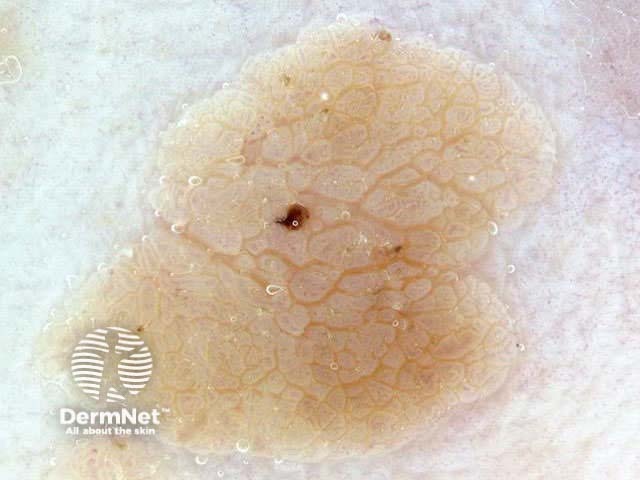 The vascular pattern may be quite distinctive and allow diagnosis of a pink skin lesion, in the absence of pigmentation or dermoscopic structures. If using a contact dermatoscope, take care not to press down on pink lesions, which will exsanguinate the vessels and make diagnosis more difficult.