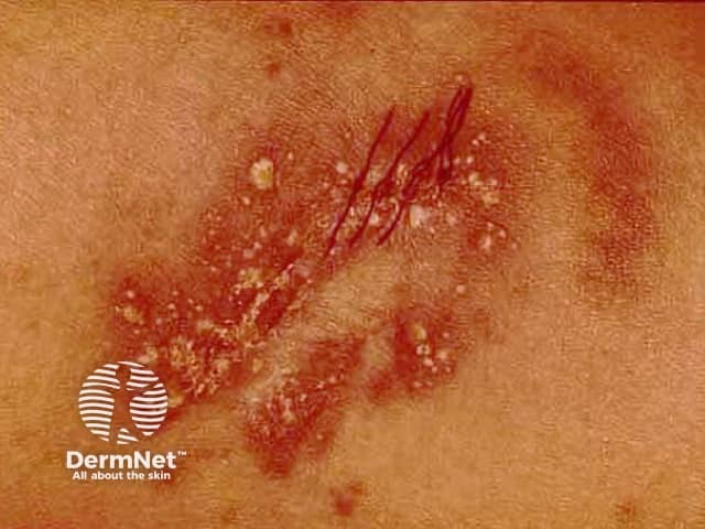 Generalised pustular psoriasis (von Zombusch psoriasis) requires urgent specialist dermatologist review.