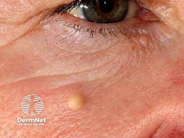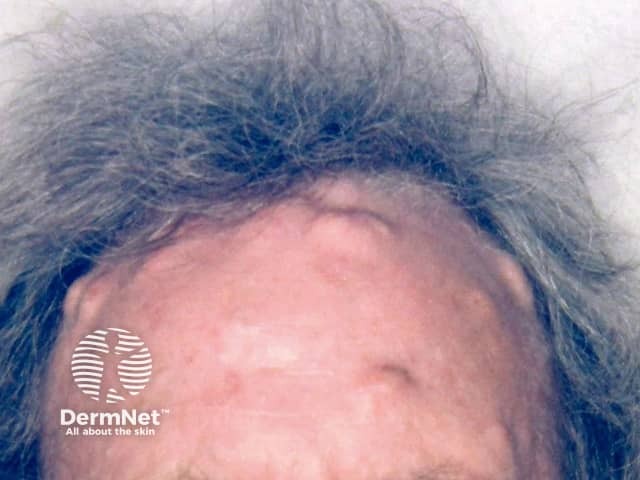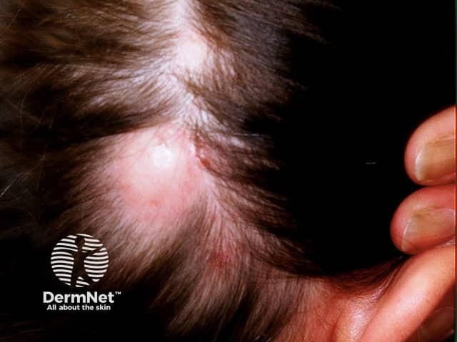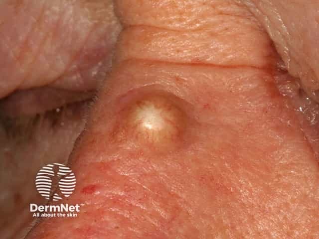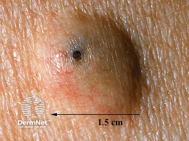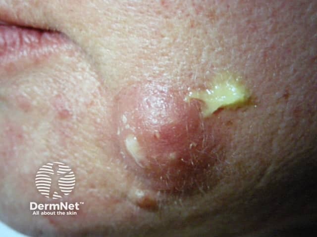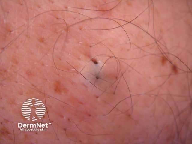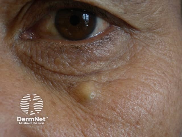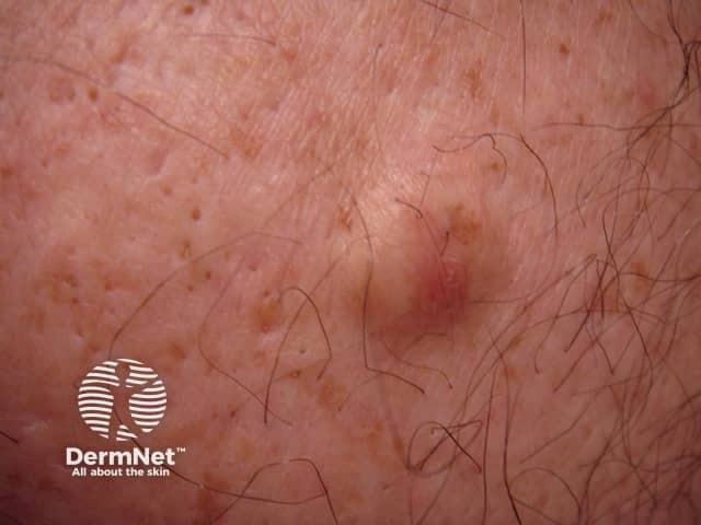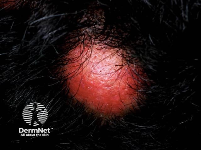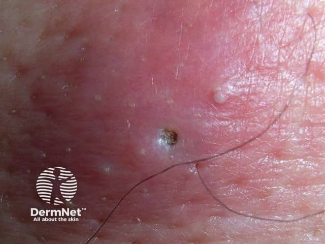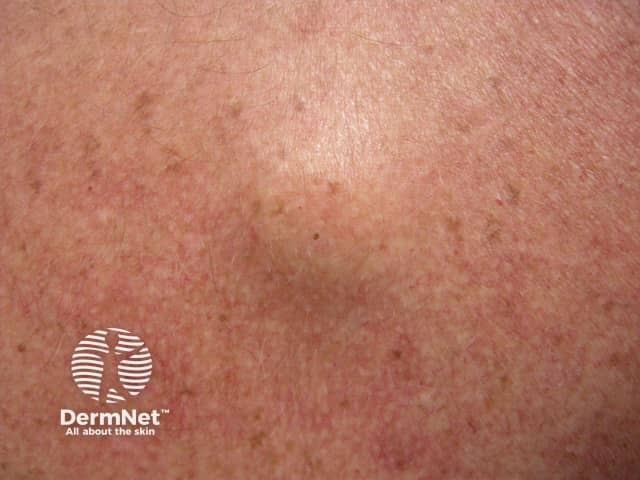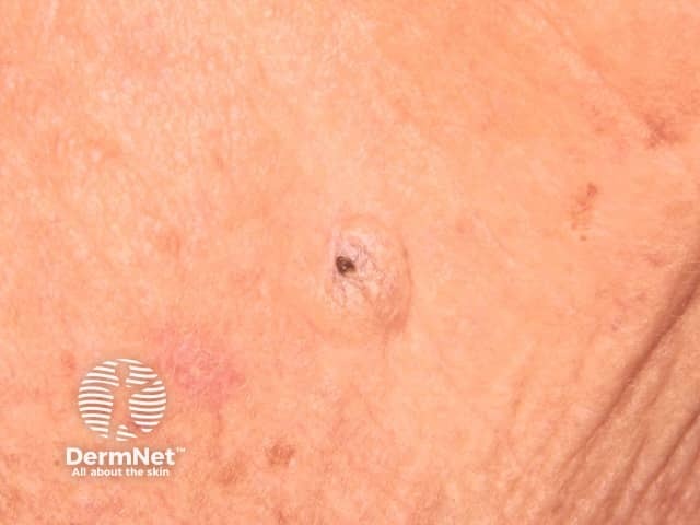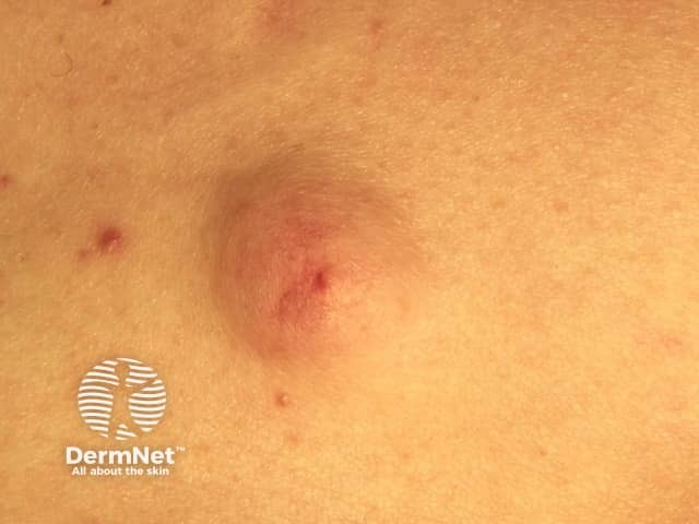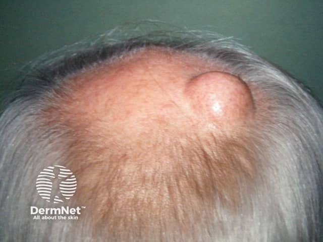 A recurrent epidermoid cyst - note the scar from a previous incomplete excision