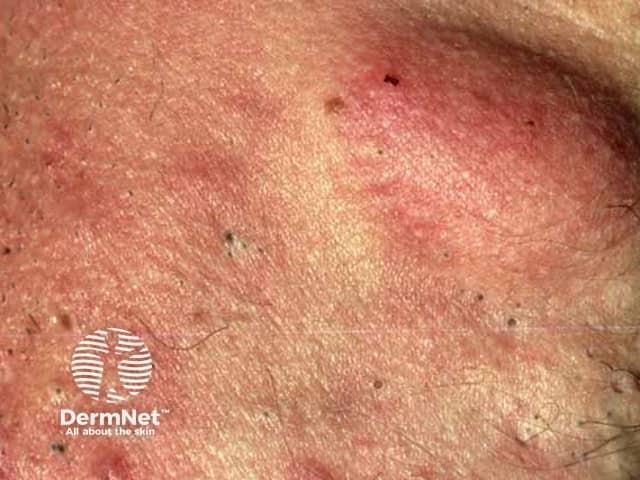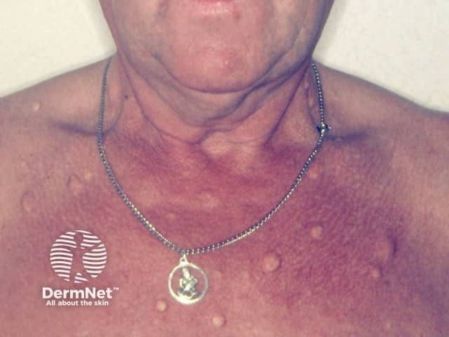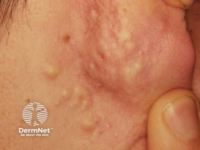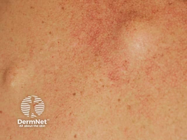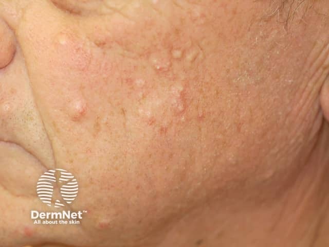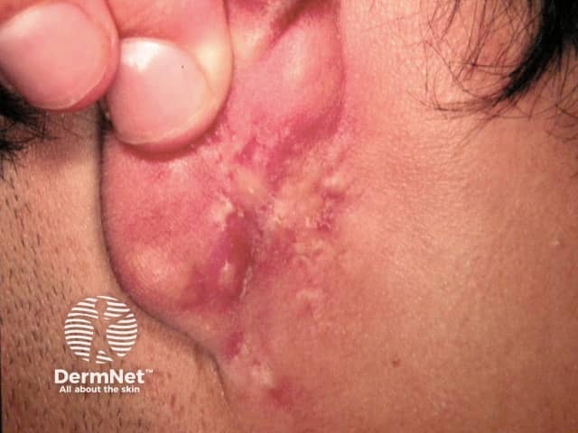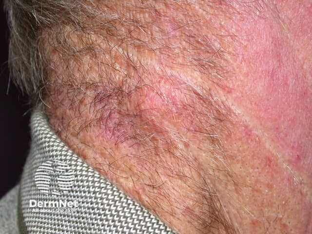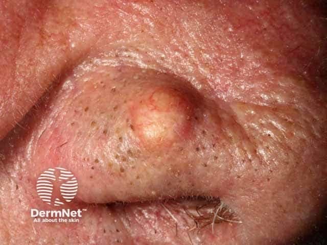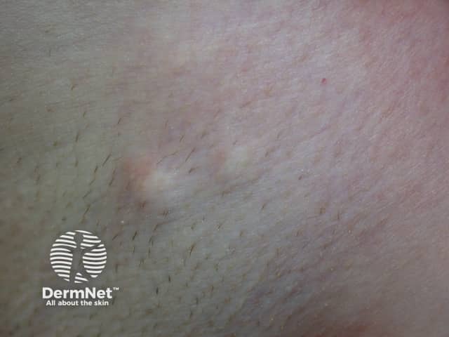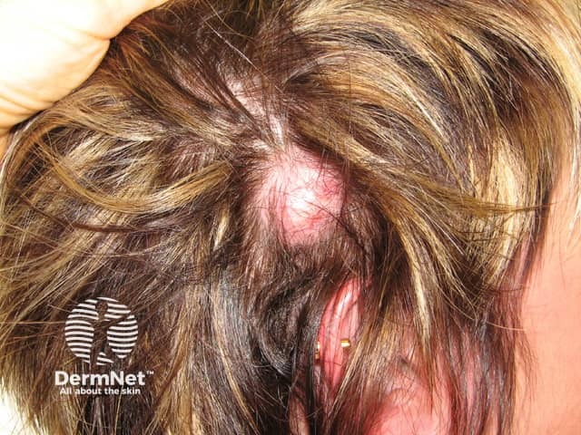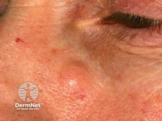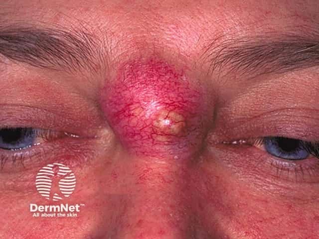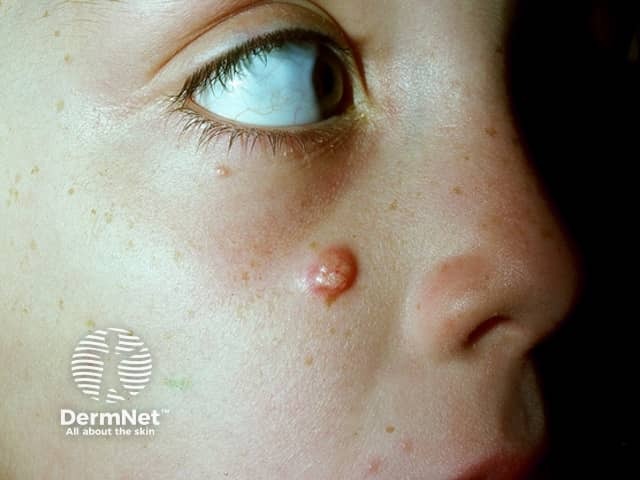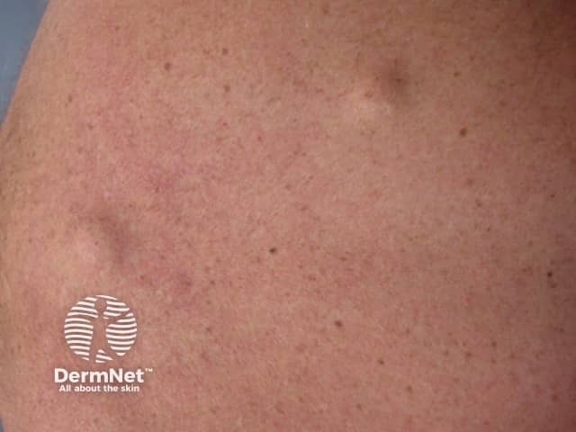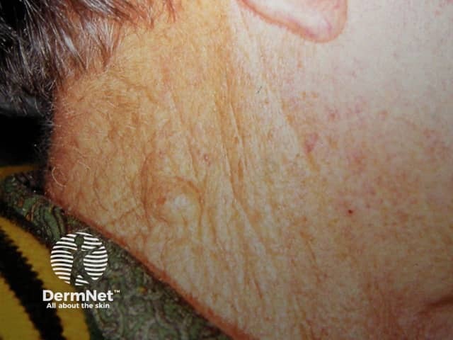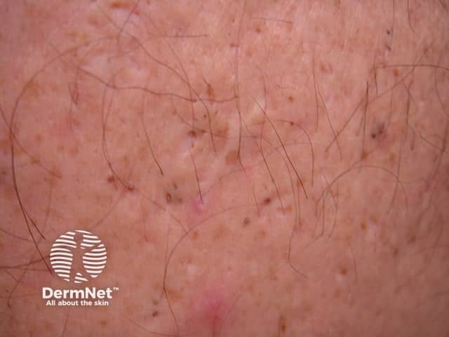 A recurrent epidermoid cyst - note the scar from a previous incomplete excision