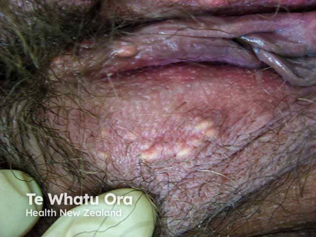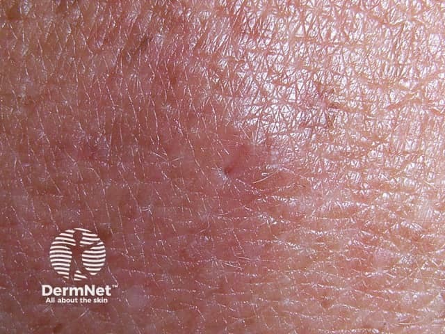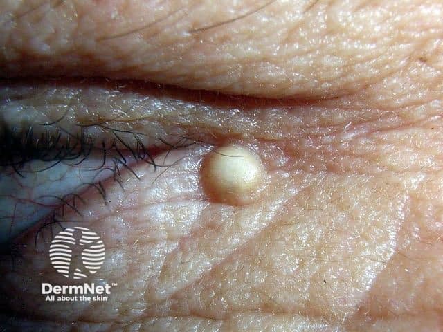The contents of a s small lid epidermoid cyst incised with a green needle