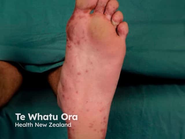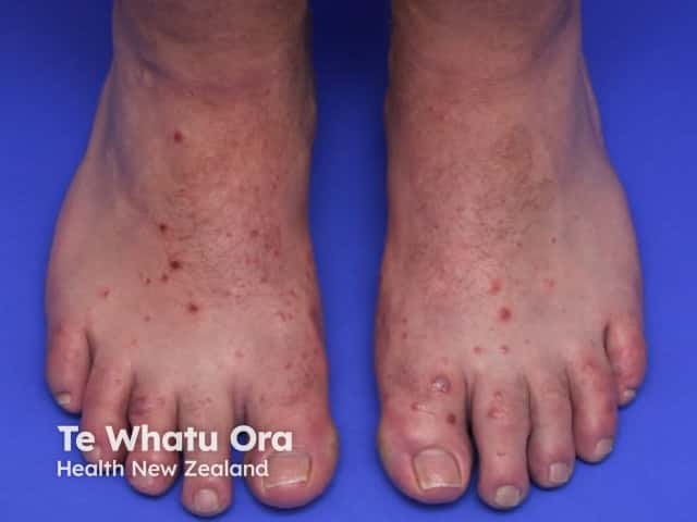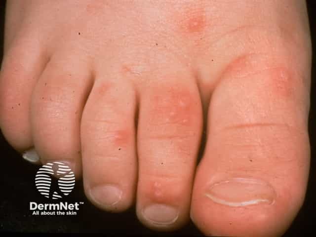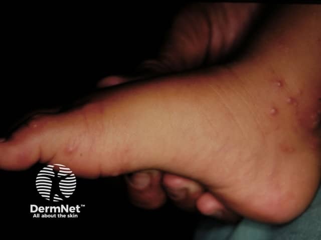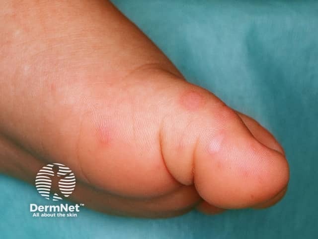 Lesions of hand, foot and mouth disease on the instep and toes (HFM-patient4)