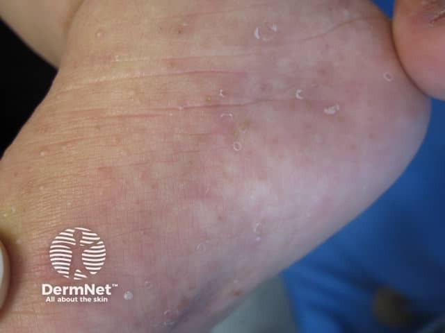 Pre-vesicular plantar lesions in hand, foot and mouth disease (HFM-patient2)
