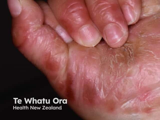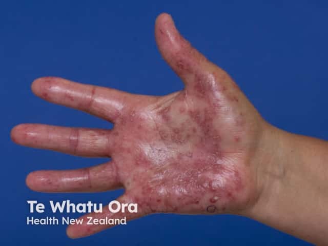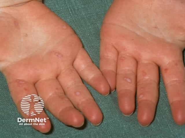 Palmar lesions in hand, foot and mouth disease