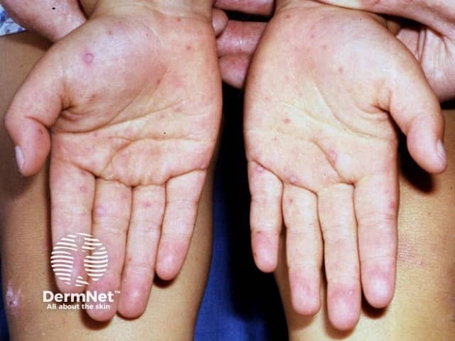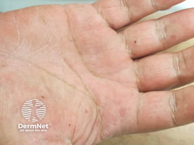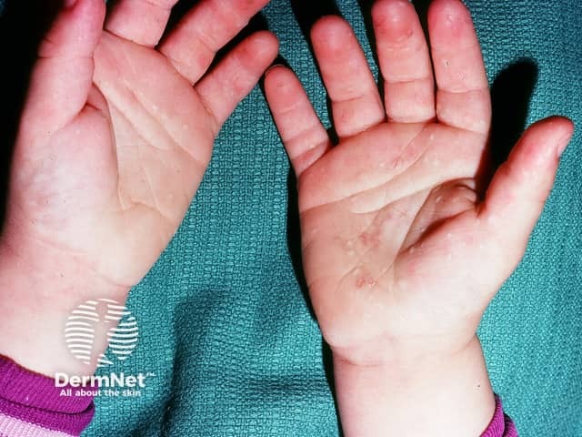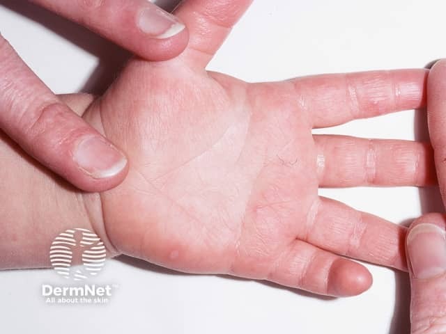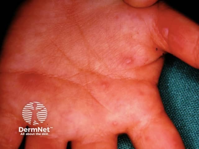 Pre-vesicular palmar lesions in early hand, foot and mouth disease (HFM-patient2)