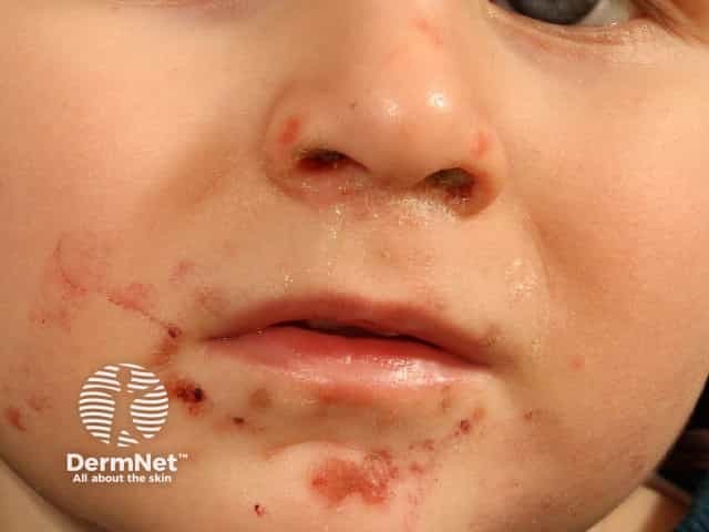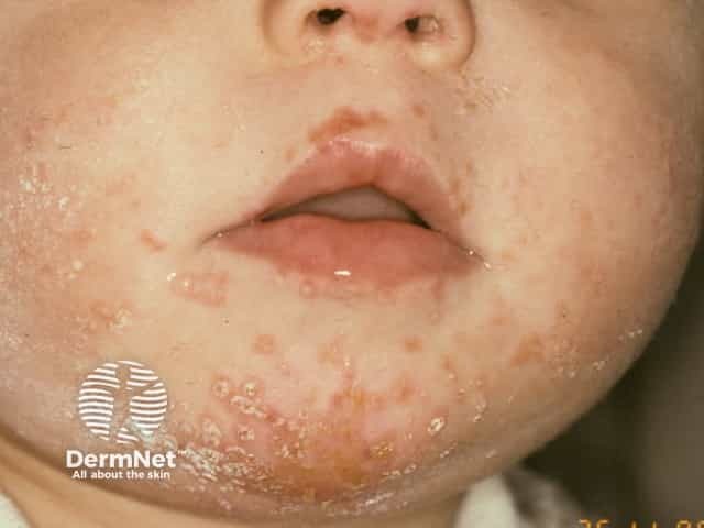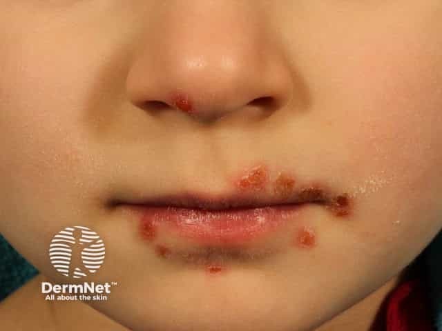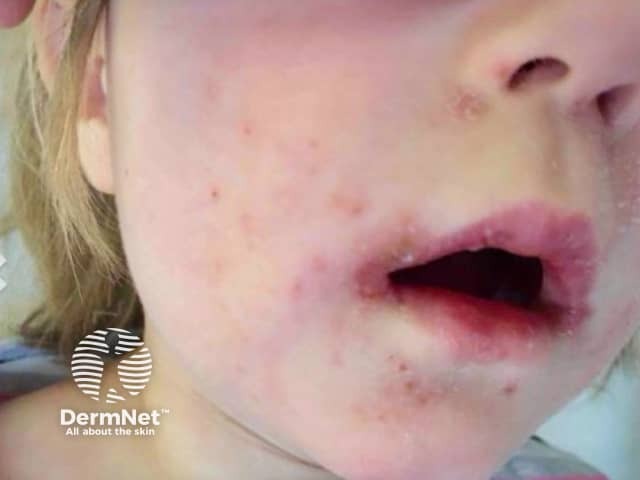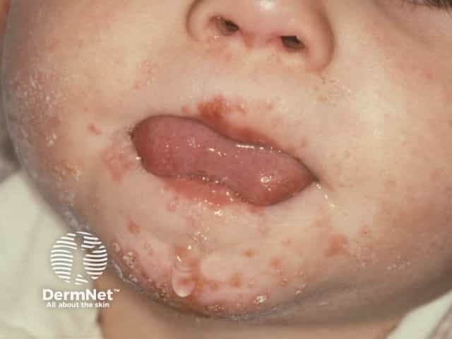 Facial vesicles in hand, foot and mouth disease