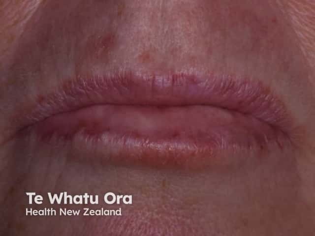 Pre-vesicular erythema on the labial mucosa in hand, foot and mouth disease (HFM-patient3)