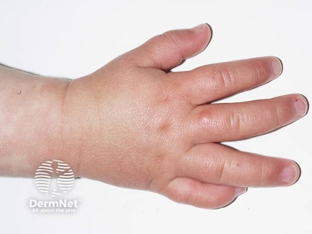 Dorsal hand blisters in hand, foot and mouth disease (HFM-patient8)