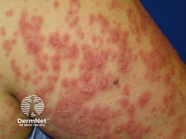 Treatment is then based around relieving symptoms with moisturisers, topical corticosteroids, oral antihistamines, and analgesics until the rash resolves. Systemic therapy is rarely indicated.