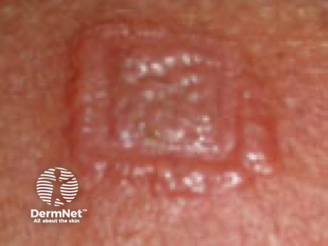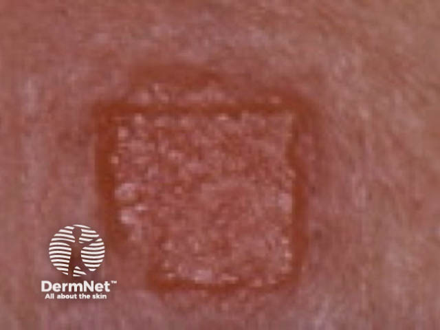 ![]() Positive patch test to gold sodium thiosulphate |