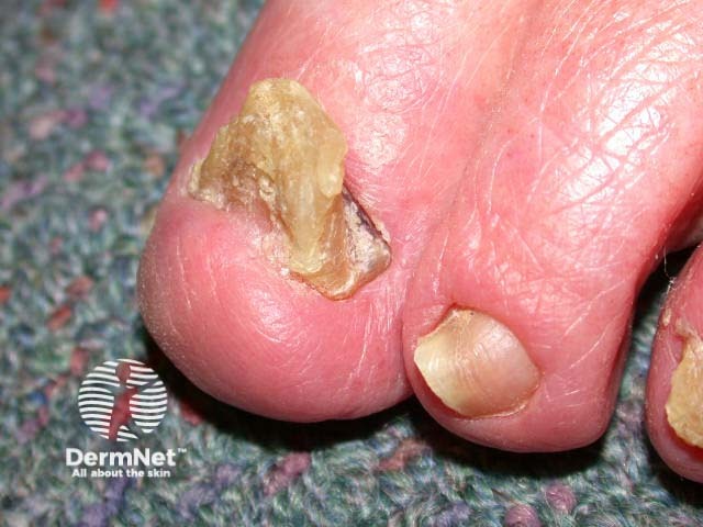 Onychogryphosis, also known as ram’s horn nail, is a nail disorder resulting from slow nail plate growth. It is characterised by an opaque, yellow-brown thickening of the nail plate with elongation and increased curvature [1,2].